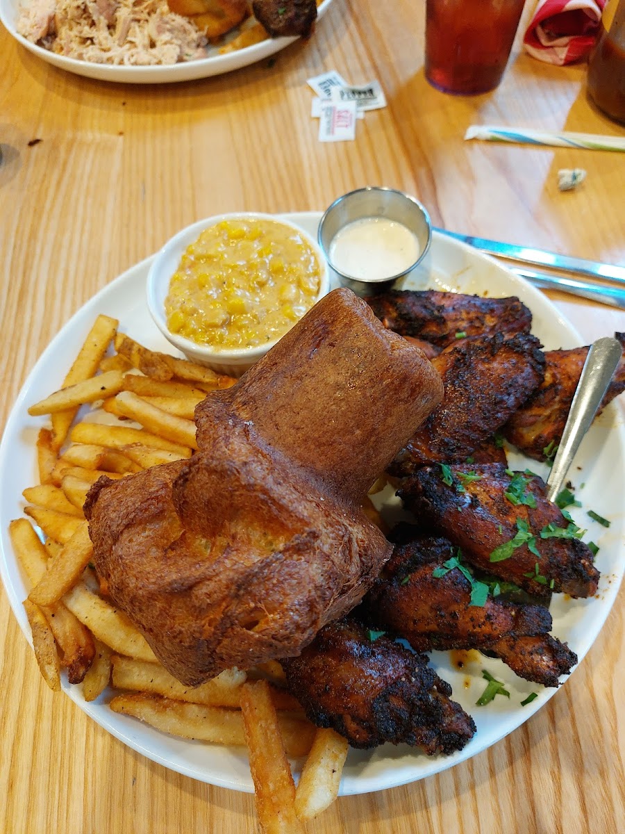 This was a wonderful dining experience! We came here looking for good BBQ while we spent an evening in St. Louis and it did not disappoint. We shared a full rack of dry rub ribs with green bean and tomato salad and white cheddar cracker mac. These ribs were some of the best ribs I’ve had. These sides were also very well executed. The only food we ordered that wasn’t it for us were the hush puppies. They seemed overcooked and were chewier than I expected. Our server was great and the atmosphere was also good. St. Charles is a gem of a town and we will definitely come back when in the area.
